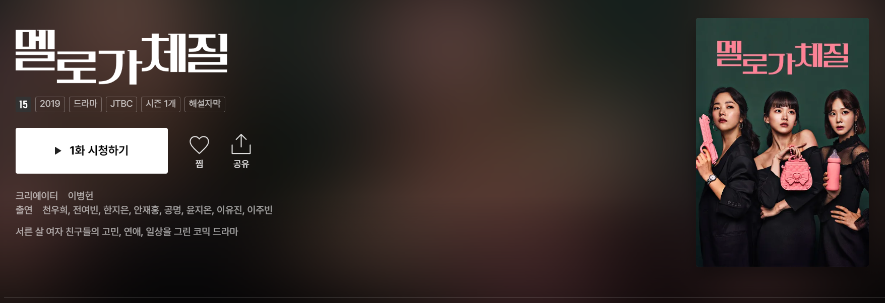 - 멜로가 체질 (천우희, 전여빈, 한지은, 안재홍, 공명 주연)