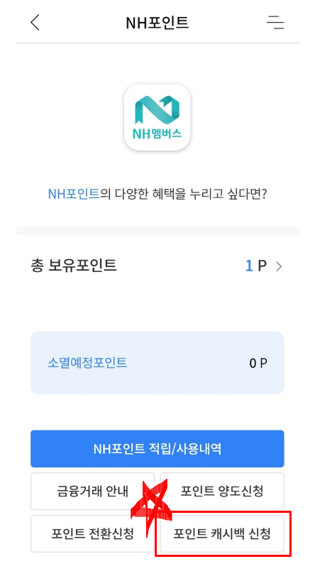 NH농협카드 포인트 현금전환 하는 방법 (캐시백)